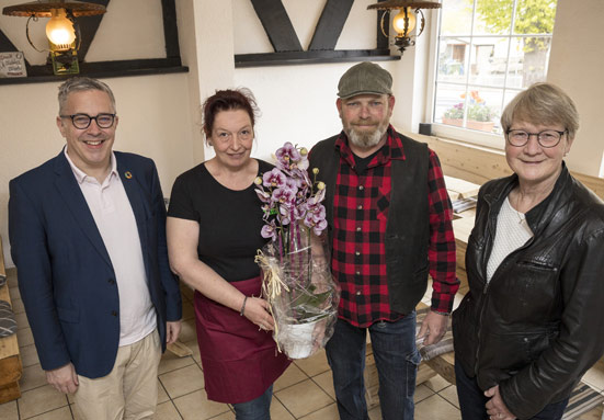 Tina und Marco Aeckersberg legen großen Wert auf die Qualität und Frische ihrer Speisen und schätzen den direkten Kontakt zu ihren Gästen. Zur feierlichen Eröffnung gratulierten der erste Beigeordnete der Verbandsgemeinde, Karsten Lucke, sowie die Stadtbürgermeisterin Sabine Willwacher und wünschten dem Ehepaar viel Erfolg und gutes Gelingen für die Zukunft.